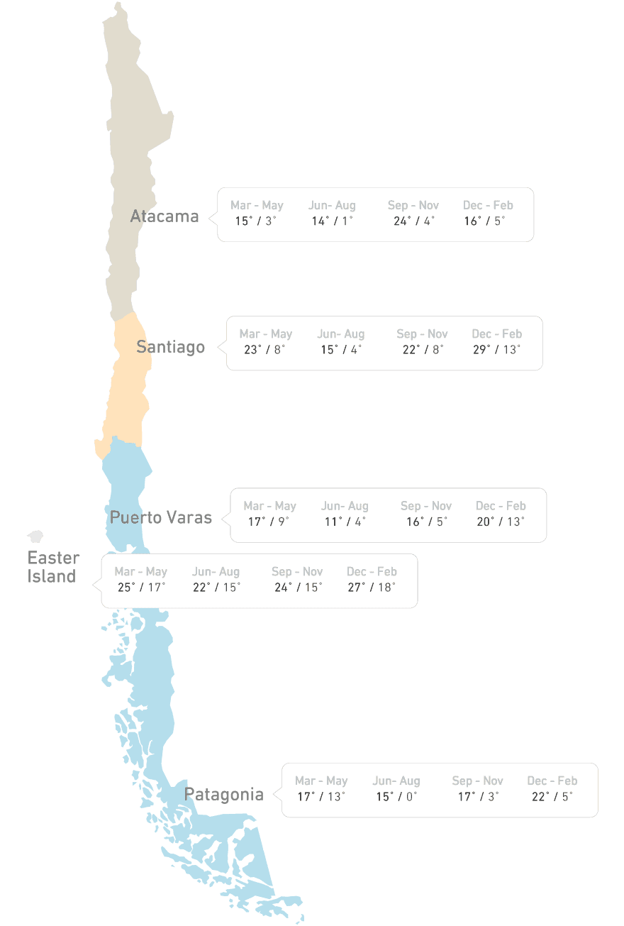 It's important to note that Chile is a long and geographically diverse country, and regional climates can vary significantly. Considering that Santiago de Chile, San Pedro de Atacama and Patagonia are the most visited destinations March is an ideal month to visit Chile.